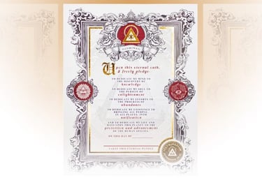 Since our origination, Illuminati members have dedicated themselves to the advancement of the human species by taking oaths of commitment. These pledges are a core tradition of the Illuminati, formed as written contracts between a single person and all members of humanity.